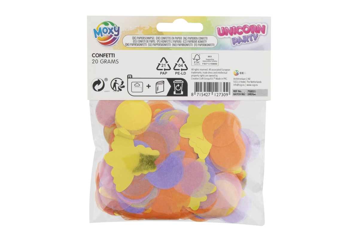 Papírové konfety s motivem jednorožce. Baleno v sáčku.Rozměry balení cca 13x14 cm. Balení cca 20g. Výrobek není hračka...