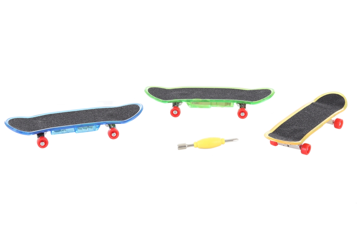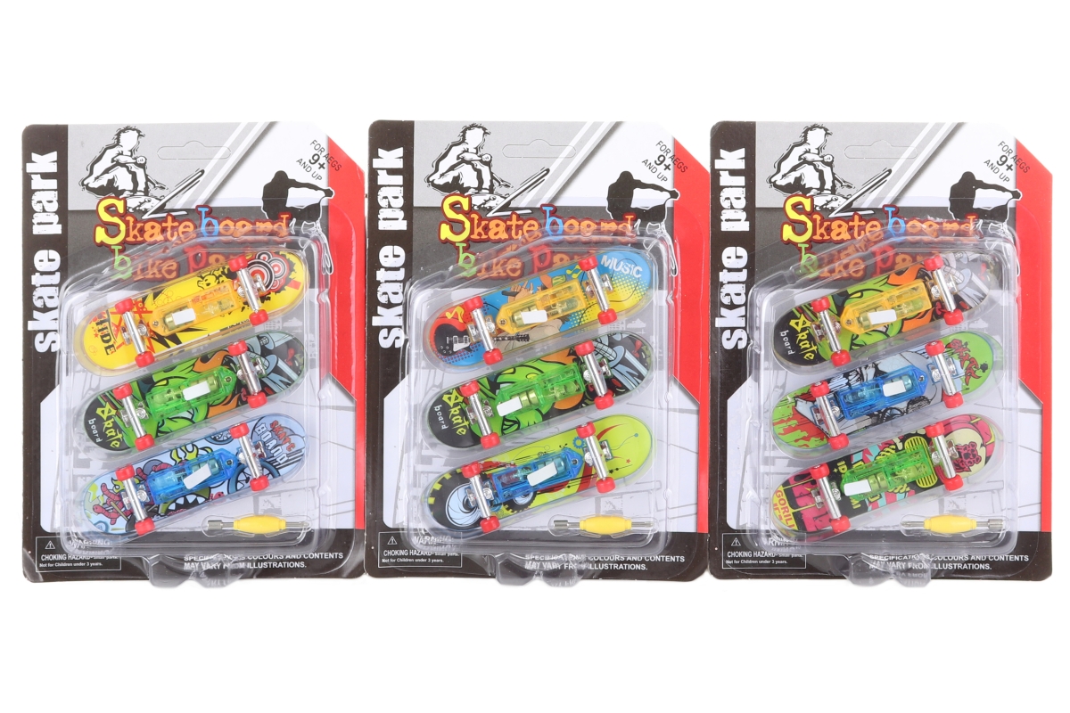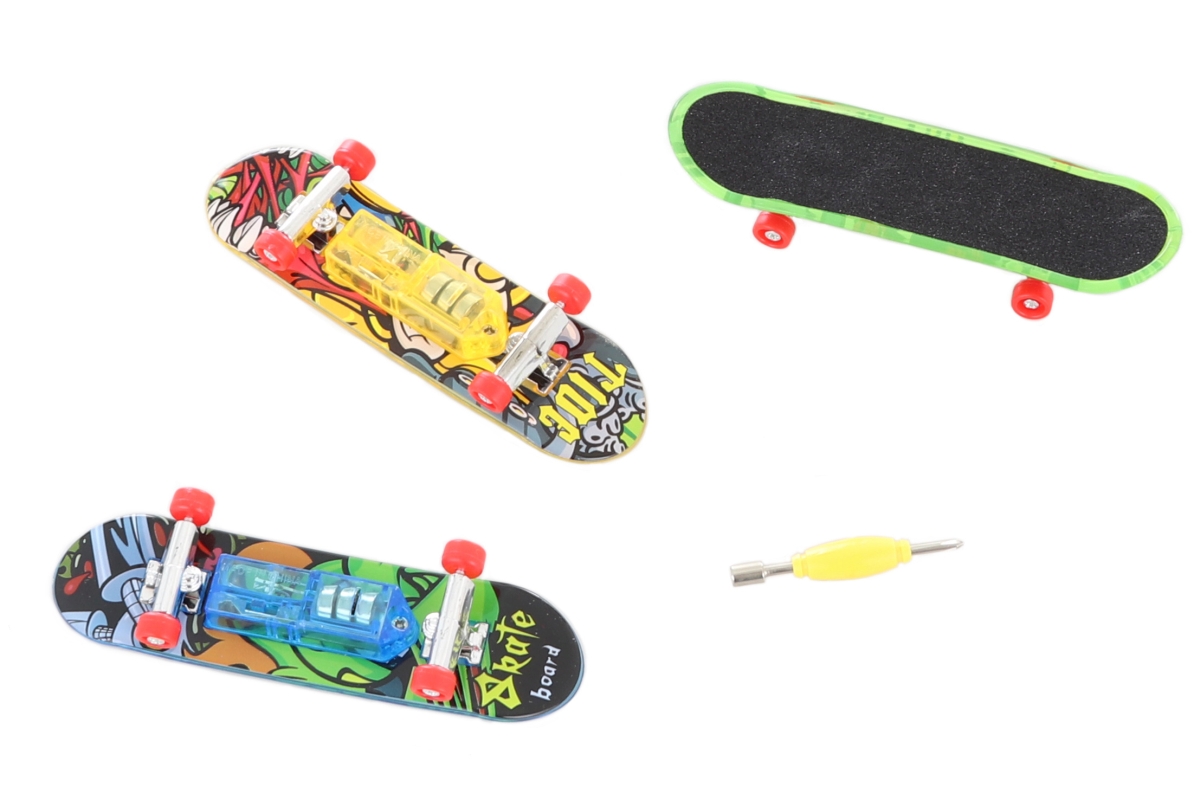 Sada plastových svítících šroubovacích skateboardů na baterie s doplňky. Rozměry skateboardu cca 9,5 x 3 cm. Napájení 3x AG13 - jsou součástí. Rozměr..
