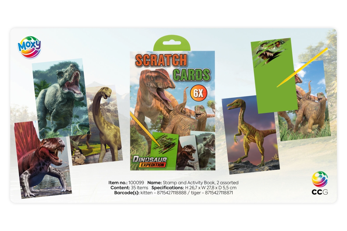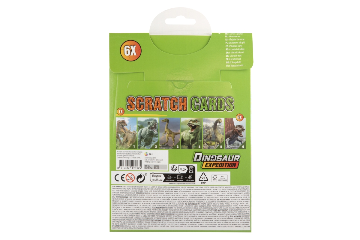 Vyškrabávání obrázků s motivem dino. Balení obsahuje 6 obrázků a vyškrabávací pero. Rozměry 15,5x21,5 cm. Věk 3+..