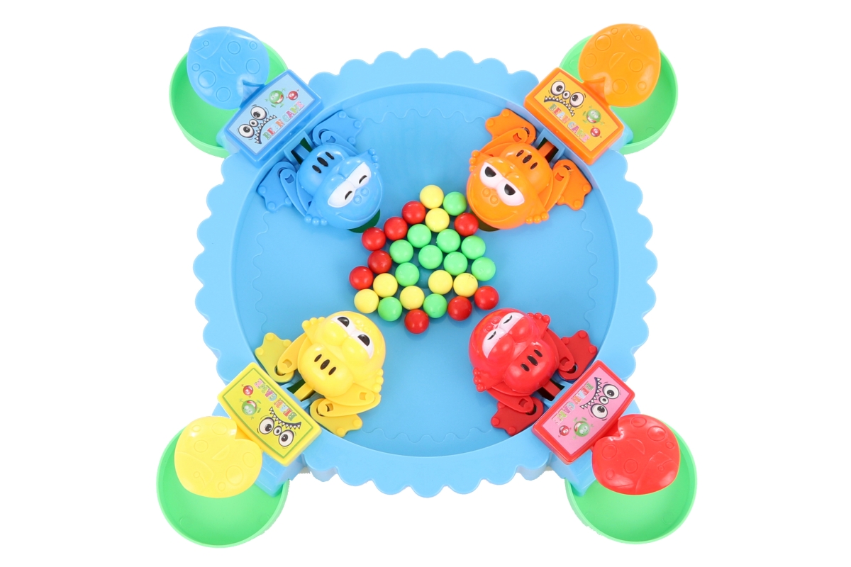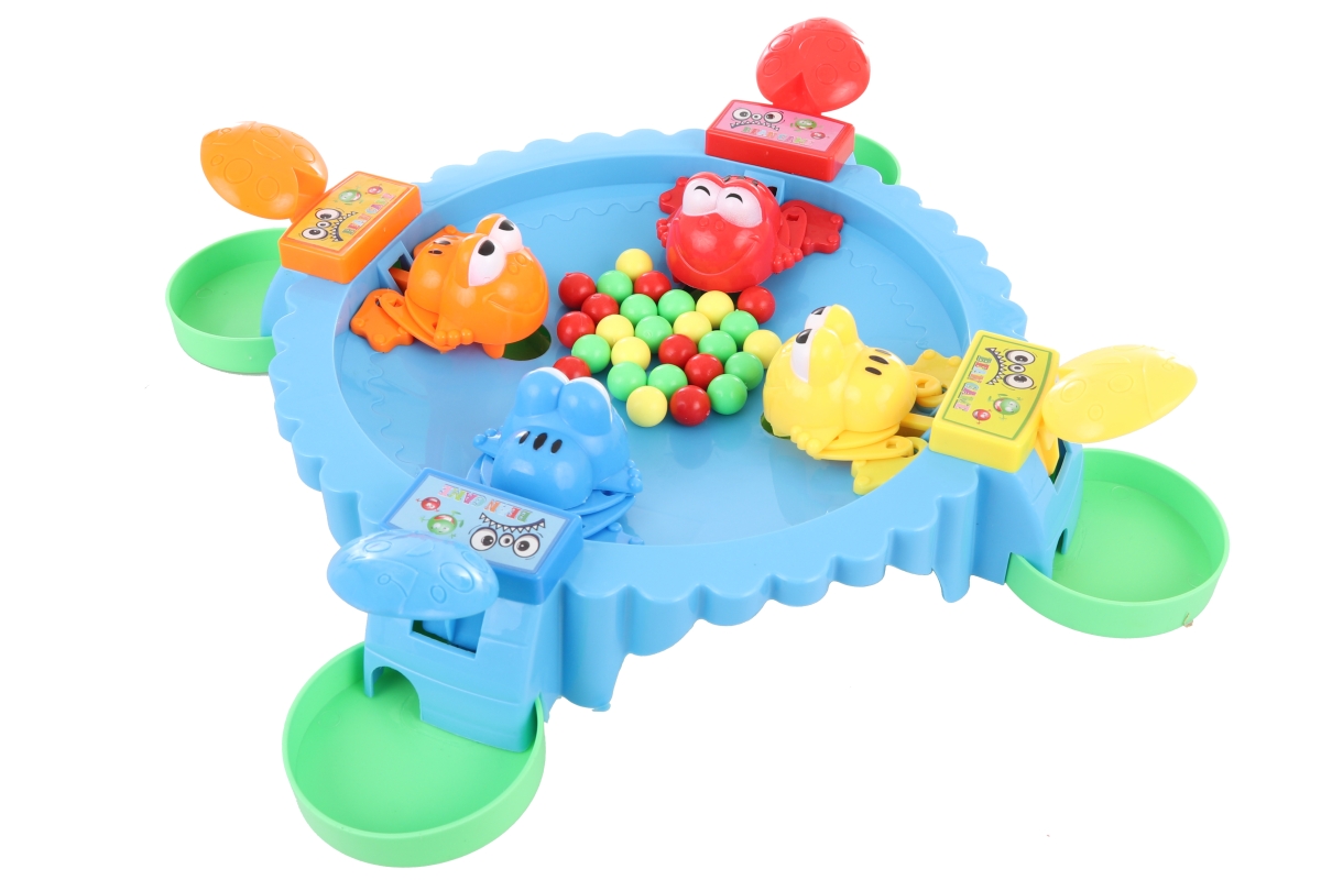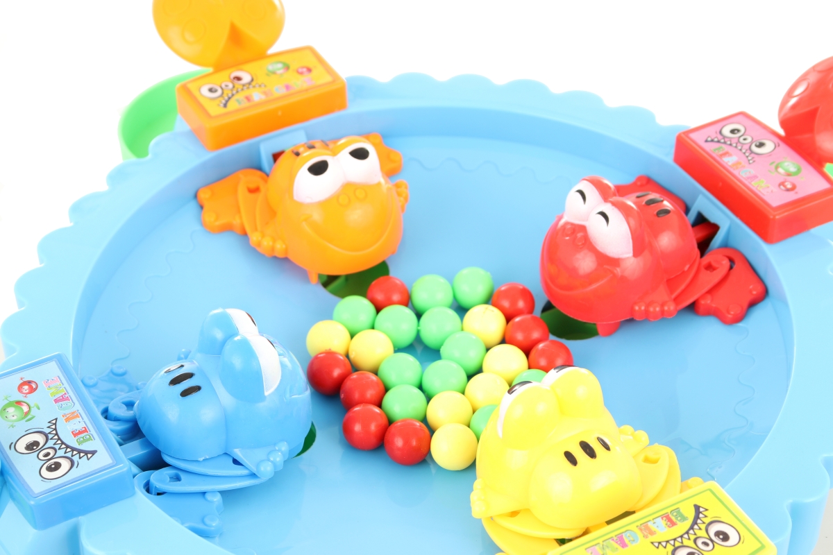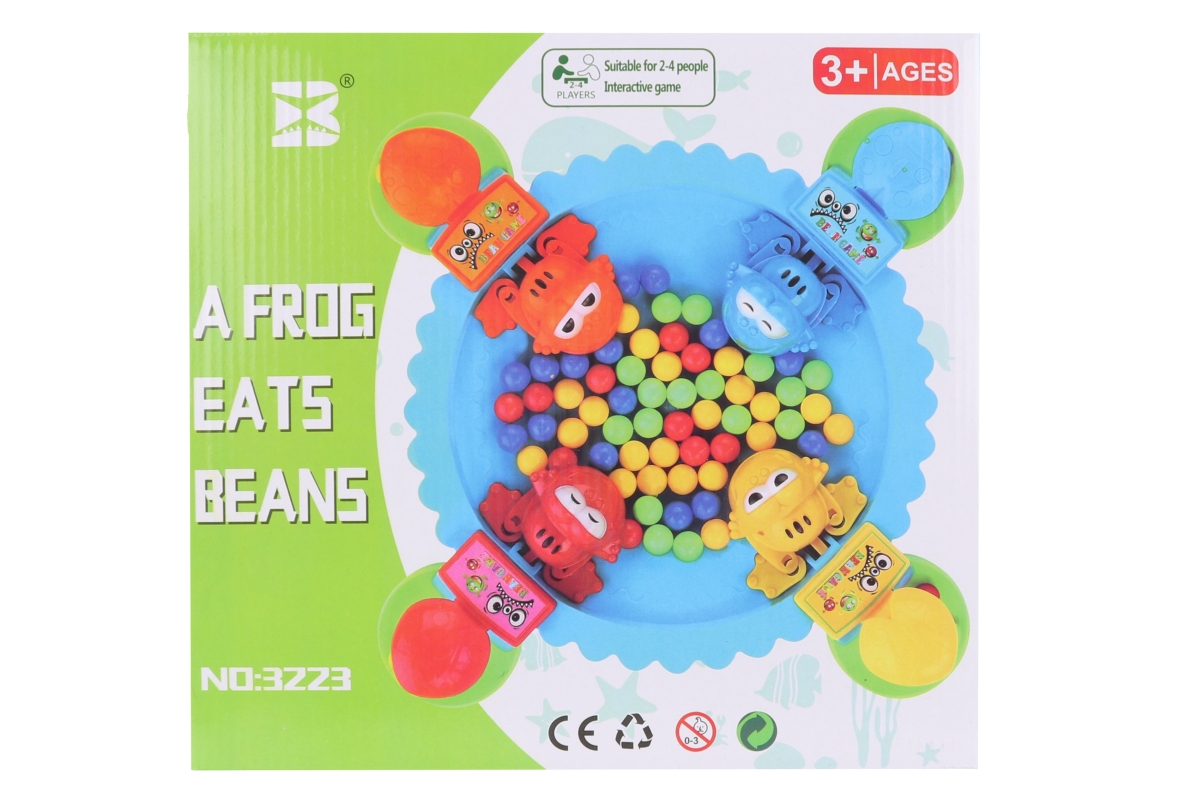 Hra hladové žáby pro 2 až 4 hráče. Úkolem je pochytat co nejvíce kulíček pomocí žáby. Rozměry balení cca 30 x 28 x 8,5 cm. Věk 3+..