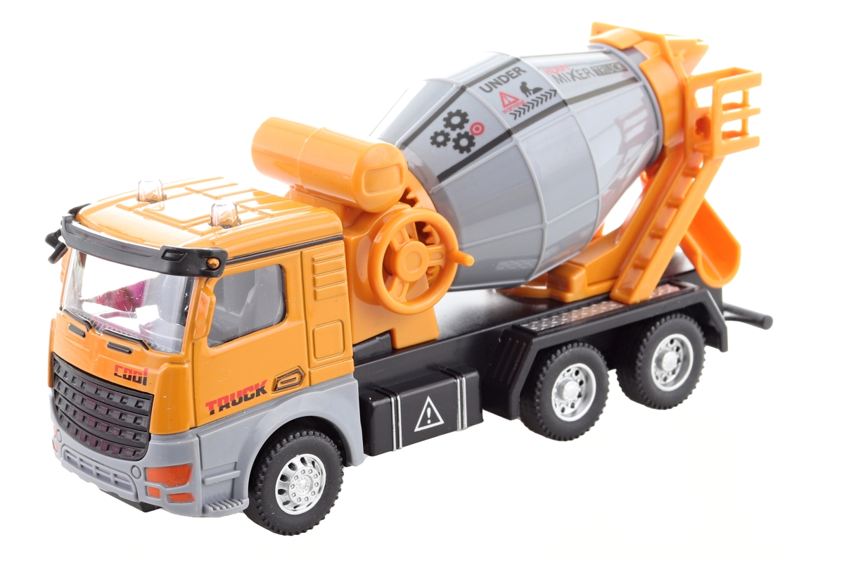 Propracovaný model stavebního auta-míchačky na setrvačník. Kombinace kovu a plastu. Baleno v krabičce. Rozměry balení cca 19x9x7,5 cm. Rozměry auta 14..