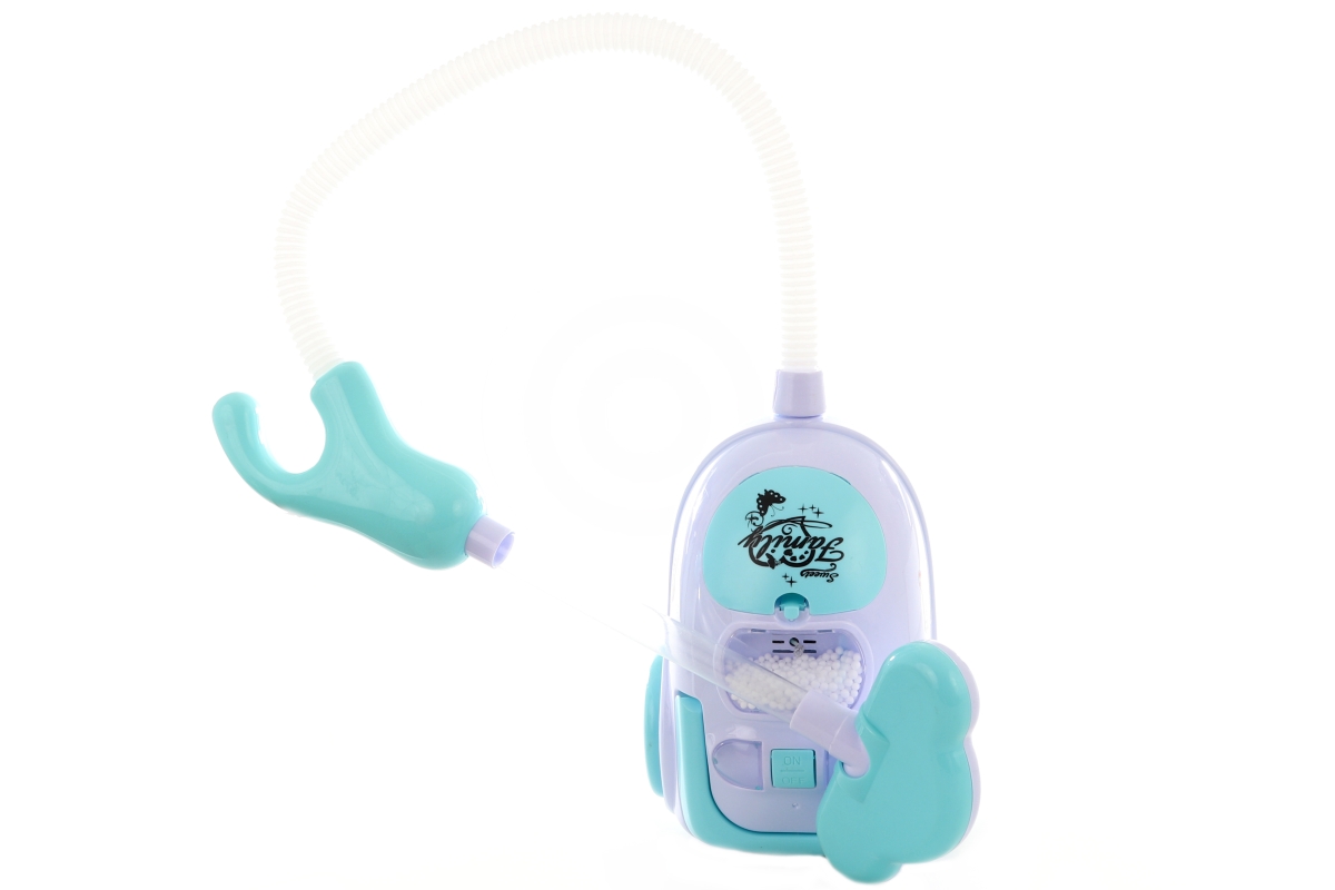 Vysavač na baterie o velikosti cca 18 x 14 cm. Vydává světelné efekty a zvuk vysavače. Vysávají se přiložené kuličky Funkční na 3 AA baterie (nejsou s..