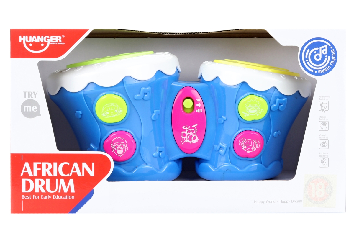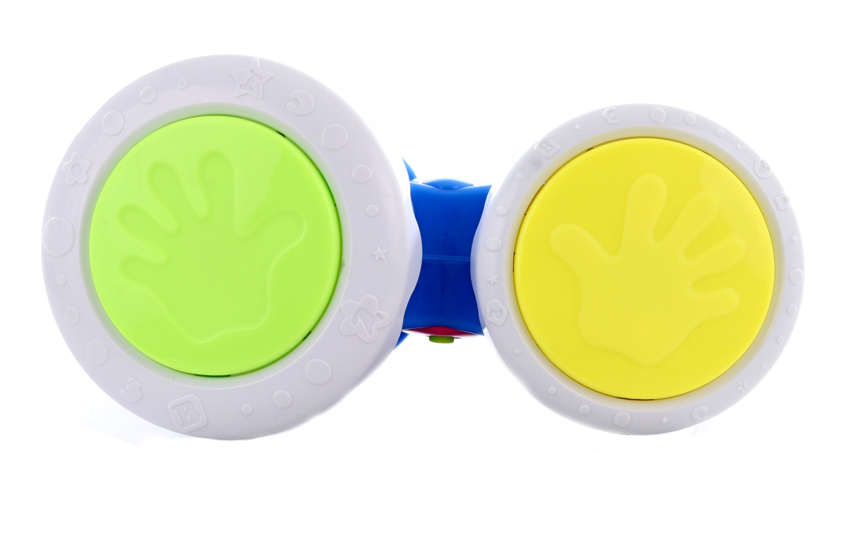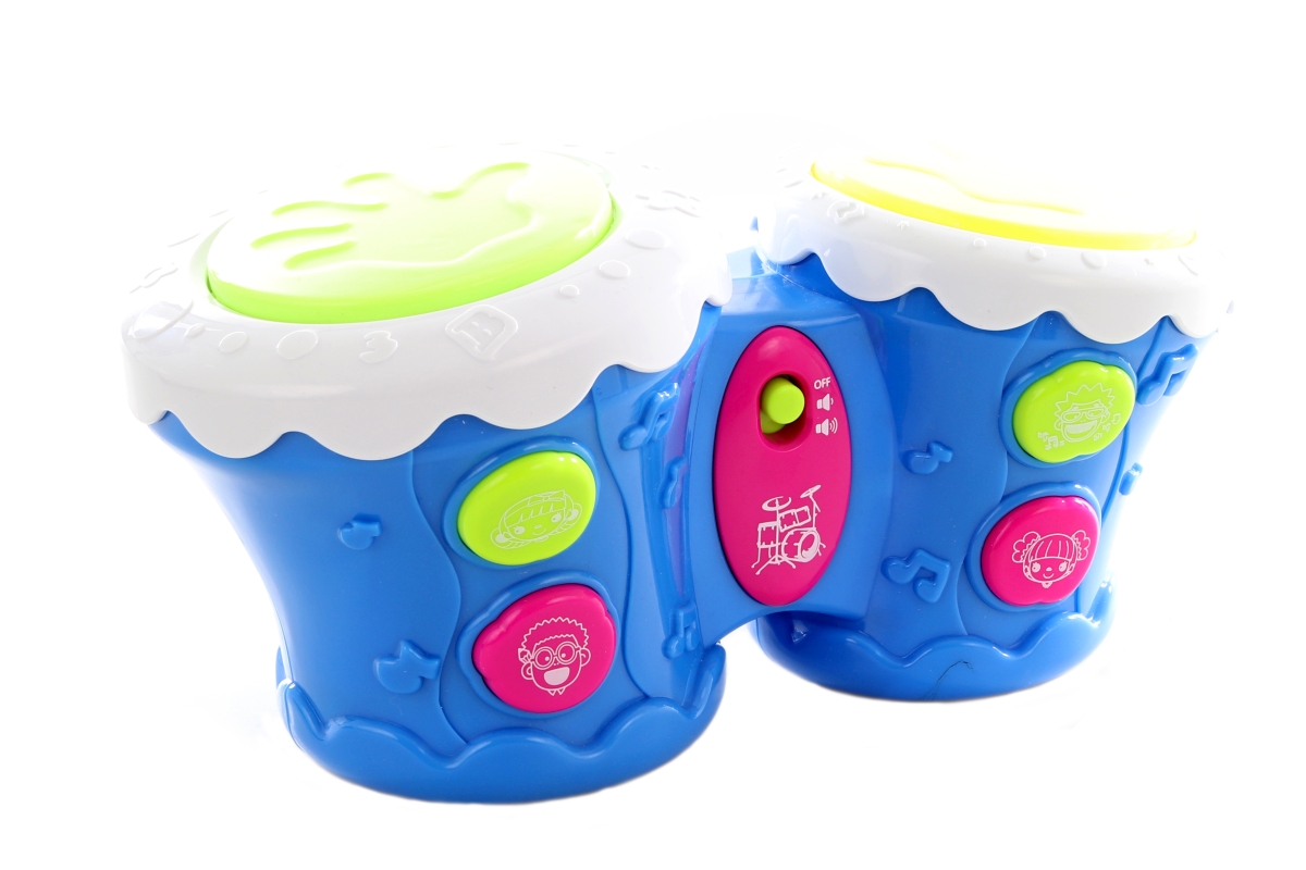 Plastové baby bubínky zaujmou děti svým barevným provedením. Jsou na baterie. Hudební hračky podporují sluchové vnímání a cit pro hudbu. Hudba napomáhá správnému rozvoji řeči. Hudba pomáhá ke správnému vývoji již od útlého věku a je přirozeným způsobem vyjadřování pocitů a emocí. Různé zvukové efekty. Jsou třeba baterie 2 x AA (nejsou součástí balení). Rozměry bubínků: 24 × 12 × 12 cm. Rozměry balení: 30 × 16,5 × 14 cm. Věk 18m+