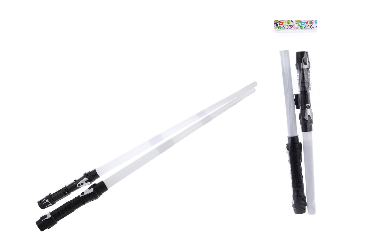 Meč oboustranný vysouvací na baterie-do každého meče jsou třeba 3 AAA, které nejsou součástí balení. Meč svítí a vydávají zvuky. Meče jdou pomocí spo..