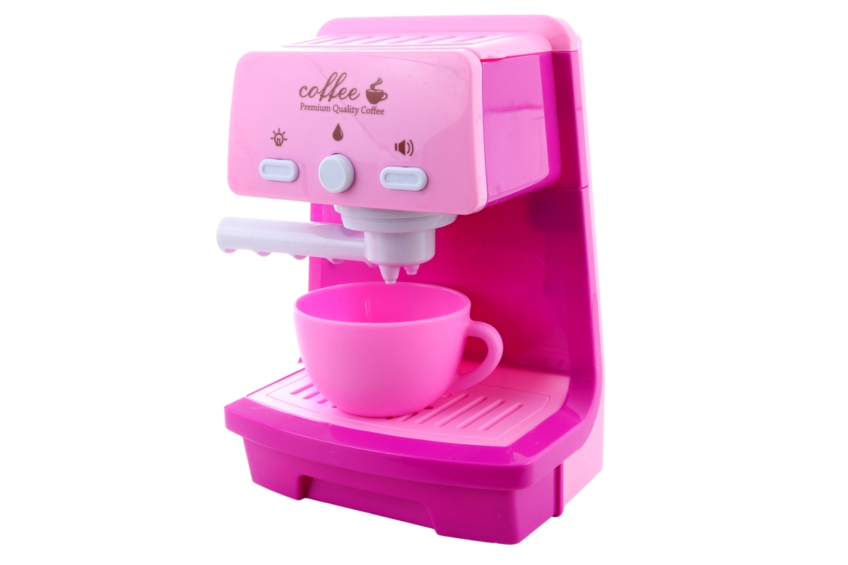 Sada obsahuje kávovar a 2 mixéry. Napájení na baterie-každý přístroj 2xAA, baterie nejsou součástí balení. Kávovar svítí a vydává zvuky, zároveň je mo..