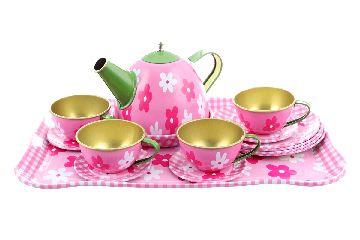 Čajový set obsahuje: 1x konvička cca 11cm, 4x hrníček s podšálkem, 4x talířek a 1x tác. Rozměry balení cca 32 x 22 x 9 cm. Věk 3+..