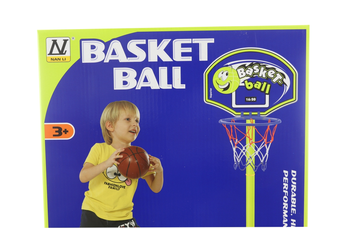 Hra basketbal pro menší děti. Materiál je plast a balení obsahuje vodou napustitelný stojan, tyč rozloženou na 3 dílky, obruč, síťku, desku, míč o prů..