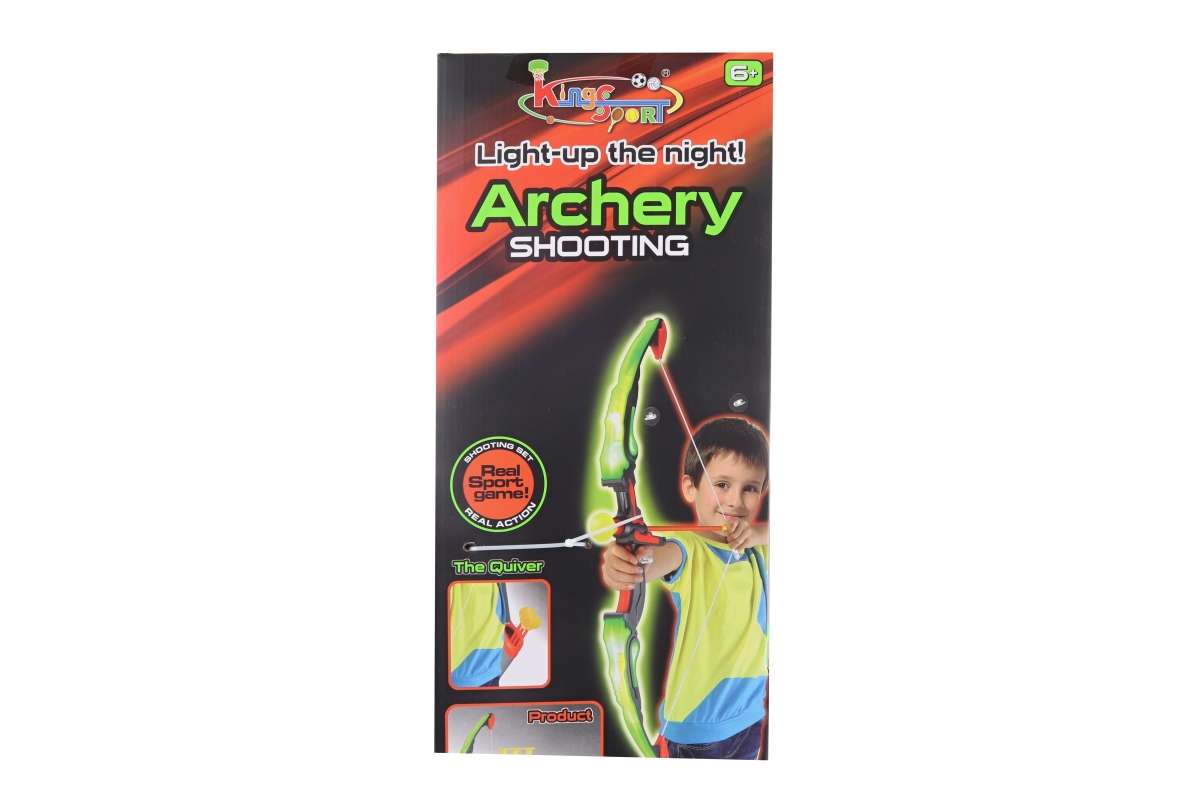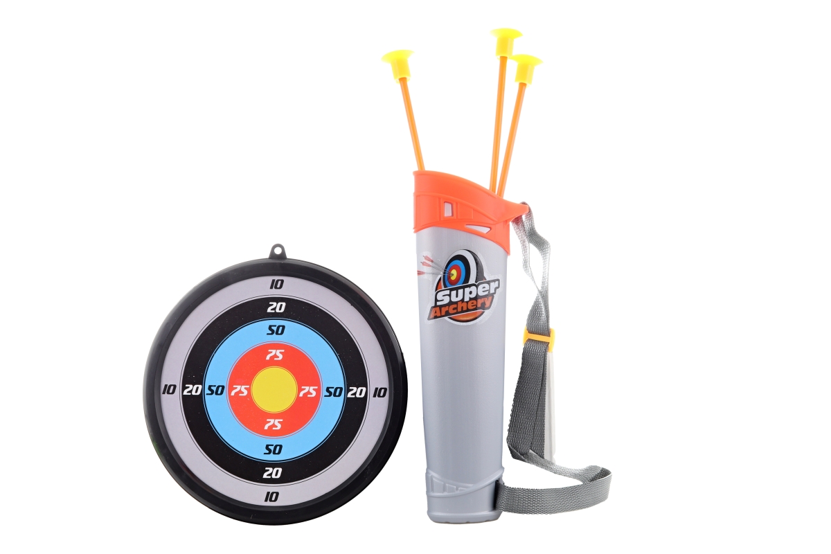 Střelecký set obsahuje Luk, 3 šípy s přísavkou, pouzdro na šípy a terč k zavěšení. Materiál plast. Baleno v otevřené krabici. Rozměry balení cca 24x63..
