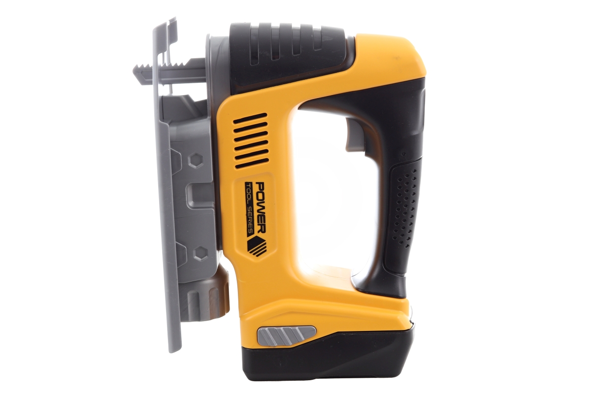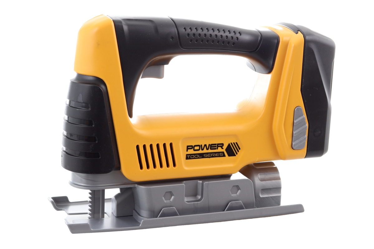 Povedená zmenšenina vykružovačky. Napájení na 3 AAA baterie, které nejsou součástí balení. Po vložení baterií hračka svítí, vydává zvuky a pilka v pře..