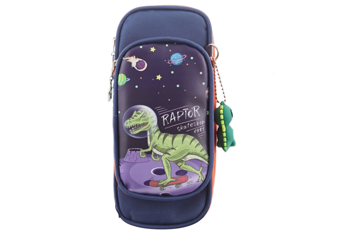 Penál s motivem dinosaura. Penál má 1 větší přihrádku na psací potřeby a 1 menší přihrádku na drobnosti. Balení obsahuje přívěsek dinosaura. Rozměry p..