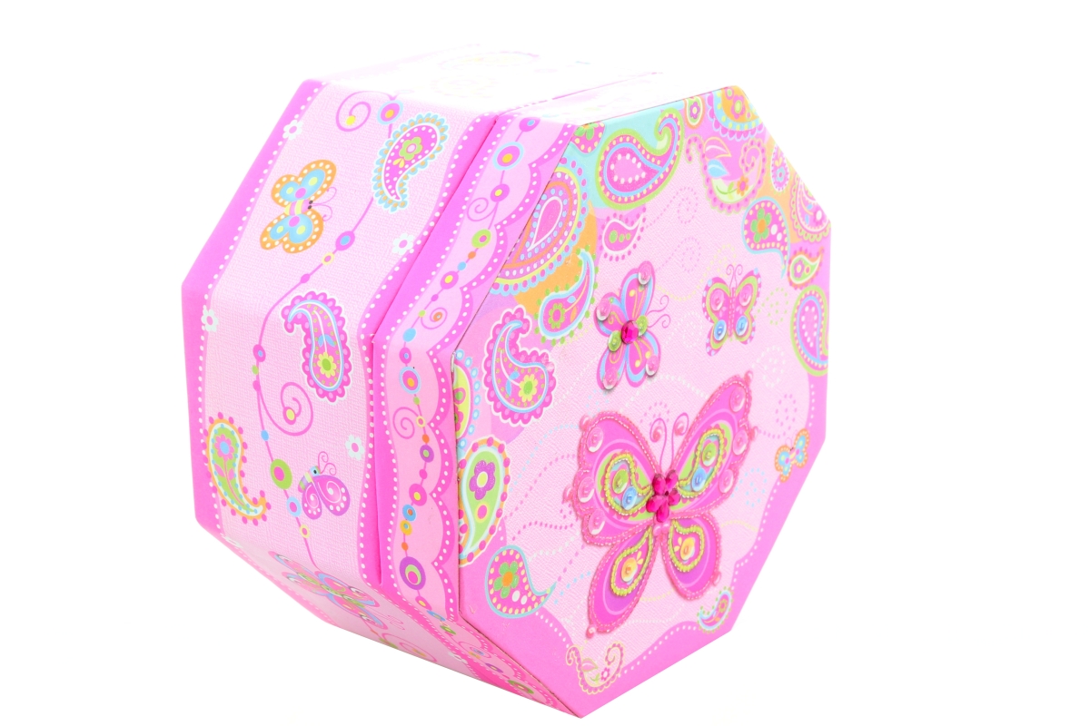 Hrací skříňka šperkovnice truhla. Uvnitř špekovnice je zrcátko a baletka, která po natažení klíčku tančí a hraje. Velikost cca 13 x 13 x 7 cm. Baleno ..