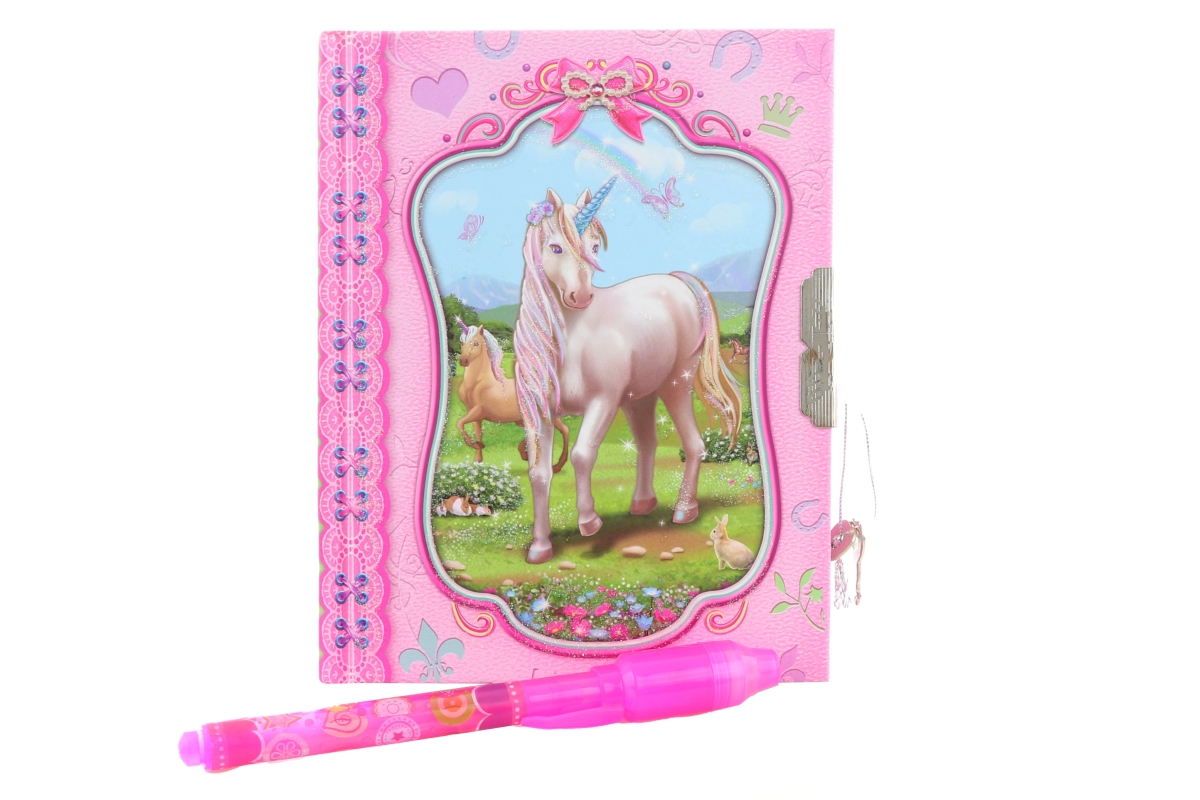 Krásný zápisník pro holčičky. Balení obsahuje speciální pero, díky němuž můžete napsat cokoliv, ale vše bude vidět pouze pod speciálním světlem na kon..
