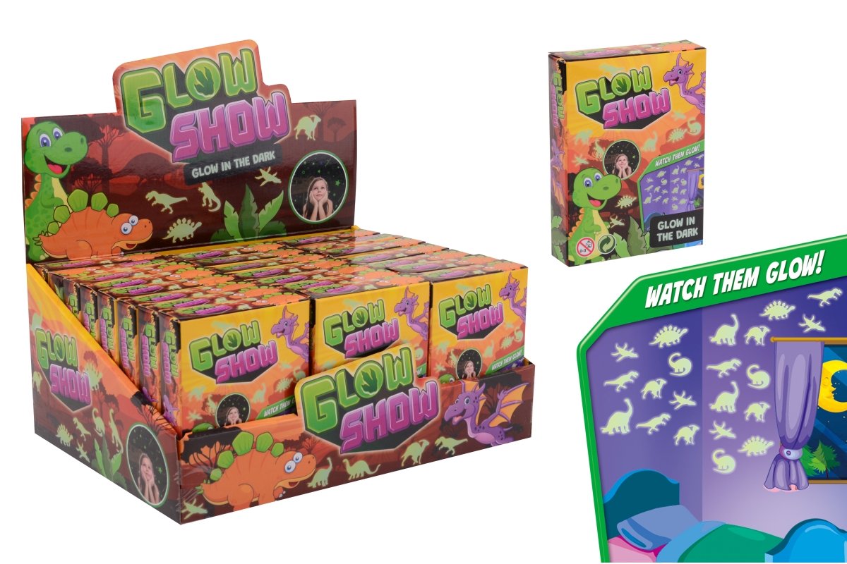 Sada fosforujících dinosaurů. Sada obsahuje 13 dílů a lepící pásku. Baleno v papírové krabičce. Rozměr balení cca 12 x 9 x 2,5 cm. Věk 3+..