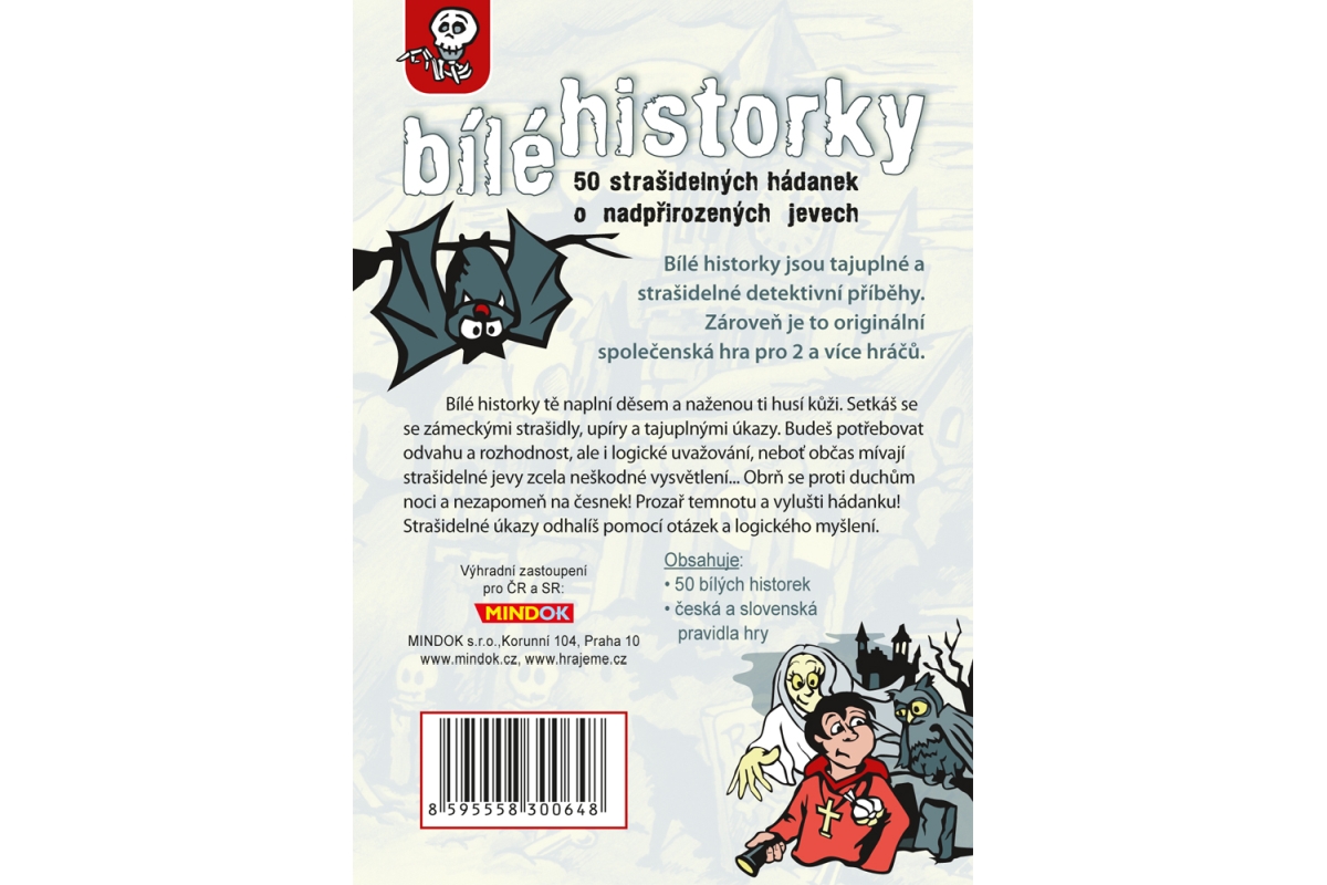 Po velkém úspěchu hry Černé historky je tu i varianta pro děti od 8 let. Bílé historky jsou zapeklité, mysteriózní záhady pro děti i dospělé s jakýmko..