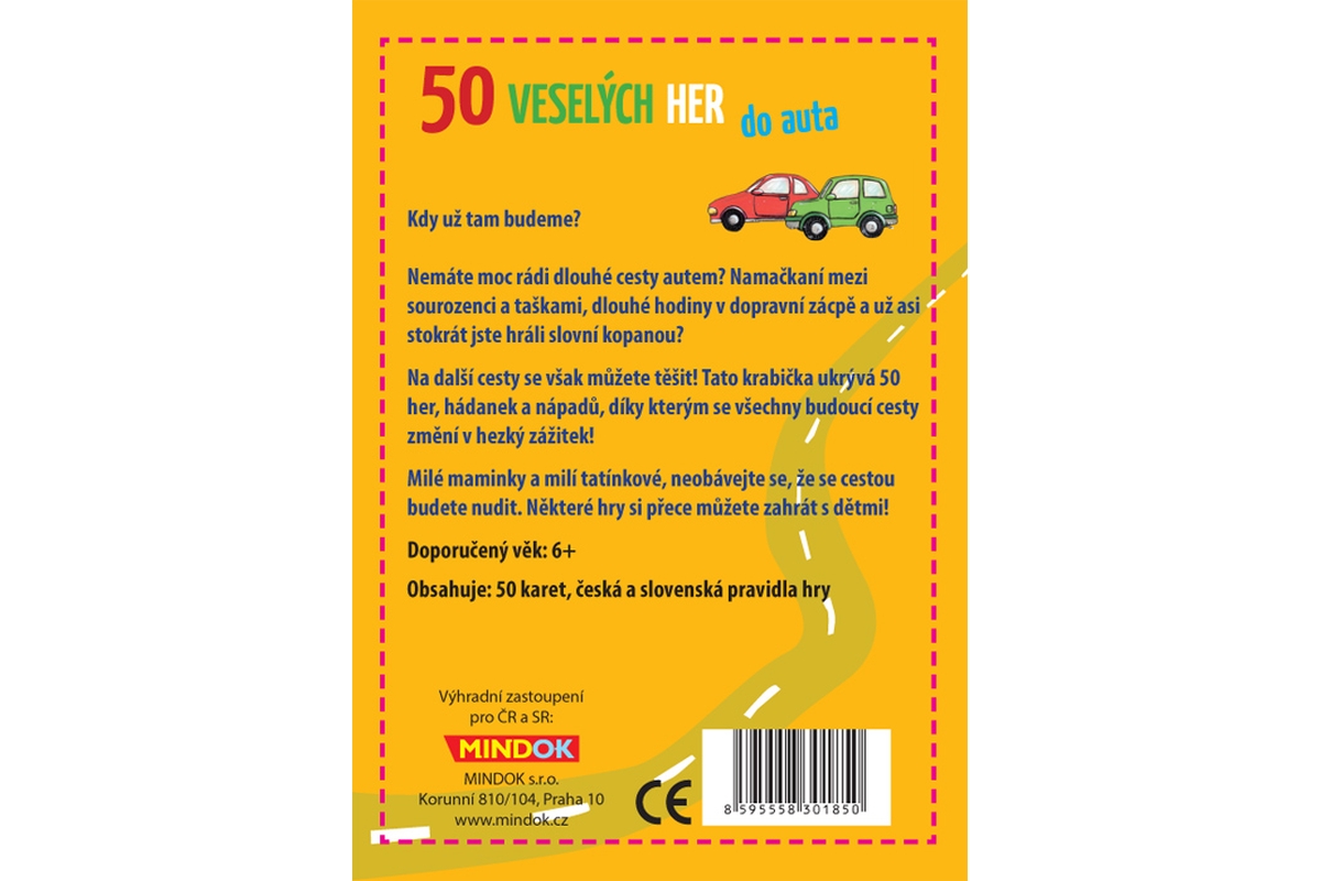 Kdy už tam budeme? Nemáte moc rádi dlouhé cesty autem? Namačkaní mezi sourozenci a taškami, dlouhé hodiny v dopravní zácpě a už asi stokrát jste hráli slovní kopanou? Na další cesty se však můžete těšit! Tato krabička ukrývá 50 her, hádanek a nápadů, díky kterým se všechny budoucí cesty změní v hezký v zážitek! Balení obsahuje 50 karet,pravidla česká a slovenská.Věk 6+