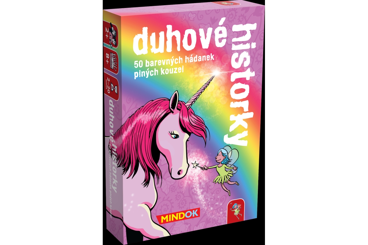 Duhové historky jsou tajuplné a zajímavé detektivní příběhy. Zároveň je to originální společenská hra pro 2 a více hráčů. Nechte se obklopit světem barevných kouzel. Setkáte se s odvážnými skřítky, překrásnými vílami a elegantními jednorožci. Čekají vás také zlé čarodějnice, záludní draci a řada dalších fascinujících bytostí. V každé hádance na vás čeká magická záhada a její řešení může jako kouzlem prozářit váš svět. Věk 8+