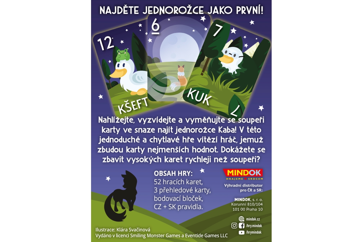 Najděte jednorožce jako první! Nahlížejte, vyzvídejte a vyměňujte se soupeři karty ve snaze najít jednorožce Kaba! V této jednoduché a chytlavé hře ví..