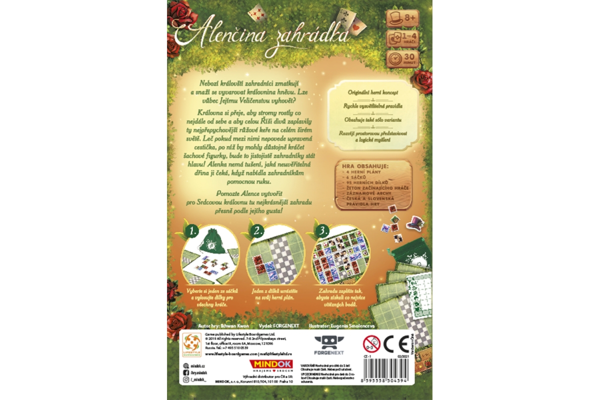 Nebozí královští zahradníci zmatkují a snaží se vyvarovat královnina hněvu. Lze vůbec Jejímu Veličenstvu vyhovět? Královna si přeje, aby stromy rostly co nejdále od sebe a aby celou Říši divů zaplavily ty nejpřepychovější růžové keře na celém širém světě. Leč pokud mezi nimi nepovede upravená cestička, po níž by mohly důstojně kráčet šachové figurky, bude to jistojistě zahradníky stát hlavu! Alenka nemá tušení, jaká neuvěřitelná dřina ji čeká, když nabídla zahradníkům pomocnou ruku. Pomozte Alence vytvořit pro Srdcovou královnu tu nejkrásnější zahradu přesně podle jejího gusta!