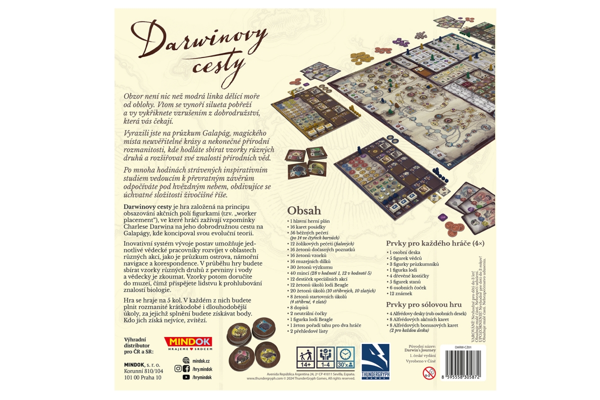 Vydejte se po stopách Charlese Darwina s hrou Darwinovy cesty! Darwinovy cesty je strategická hra pro 1-4 hráče, ve které se stáváte biology zkoumajícími fascinující přírodu Galapág. Sbírejte vzorky rostlin a živočichů, rozvíjejte své vědecké znalosti a pečlivě dokumentujte svá bádání v muzeích. Určeno pro 1-4 hráče. Věk 14+
