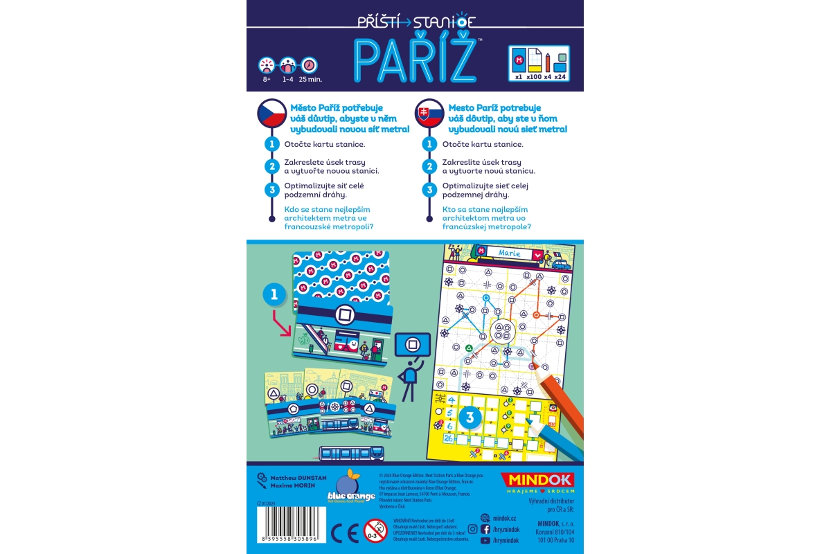 V Příští stanici Paříž se stáváte architekty pařížského metra. Vaším cílem je navrhnout efektivní síť linek, propojit ikonické památky a získat za svůj projekt co nejvíce bodů. Hra pro 1-4 hráče je svižná, elegantní a chytlavá, ideální pro rodiny i zkušené stratégy.Určeno pro 1-4 hráče. Věk 8+
