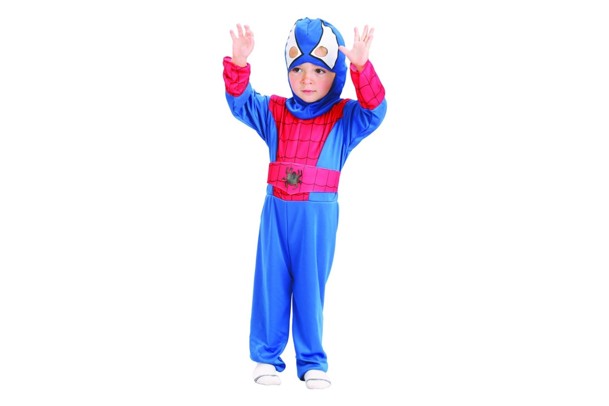 Karnevalový kostým pavoučí hrdina pro děti o velikosti 92-104 cm. Balení obsahuje kombinézu, kuklu a opasek. Materiál polyester. Rozměry balení cca 30..